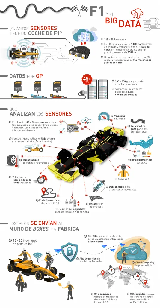 El entorno de la Formula 1 hace un uso intensivo de las tecnologías más avanzadas en cuanto a comunicaciones y Big Data, y es el análisis de las ingentes cantidades de datos que se generan cada minuto de un fin de semana de Gran Premio lo que hace especial a la competición.