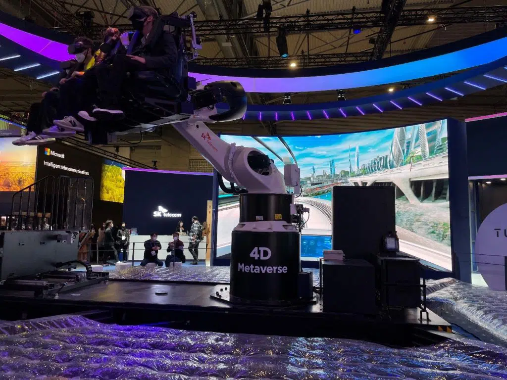 Sin duda una de las atracciones (nunca mejor dicho) de la feria es la demo de realidad virtual que trajó al evento la operadora coreana: un simulador de realidad virtual que nos hizo creer que estabamos volando por un mundo imaginario a bordo de un dron. Esto hizo que se generarán colas continuas para probarlo. Realmente no es algo que tenga relación con un operador de telefonía móvil, pero SK ha querido sacar músculo y atraer todas las miradas a su stand. ¡Y vaya si lo ha conseguido!