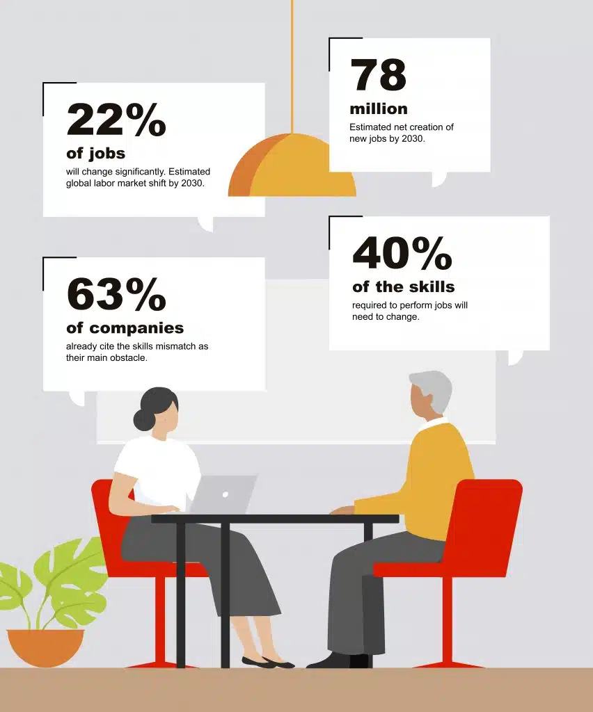 The World Economic Forum’s 2025 Future of Jobs Report predicts a major transformation of the global labor market this decade: about 22% of current jobs will change significantly by 2030, with a net creation of 78 million new jobs. This shift will be driven by a combination of technological, demographic, and geo-economic factors reshaping the skills the workforce needs. Nearly 40% of the skills required for current jobs are expected to change, and 63% of companies already cite this skills gap as their main challenge. While fields like artificial intelligence, big data, and cybersecurity will drive much of the demand, human skills such as creativity, adaptability, and resilience will remain essential.