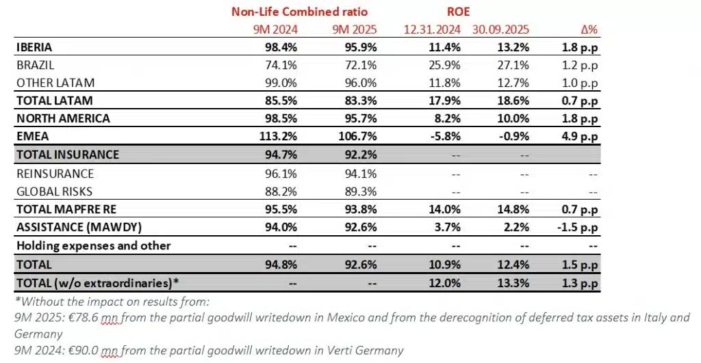 • Operating revenue, which includes premiums and service revenue, reaches €354 million, and the unit posts a net profit of €3 million, with a 1.4 p.p. improvement in the combined ratio to 92.6%.