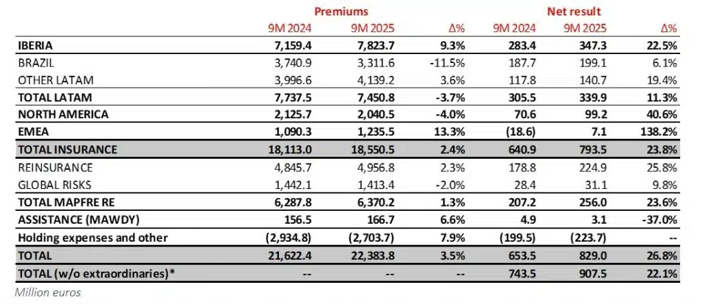 • IBERIA shows a significant increase in the net result to €347 million (+22.5%) and a combined ratio of 95.9% (-2.5 p.p.), thanks to the progress of the Auto and Health businesses.