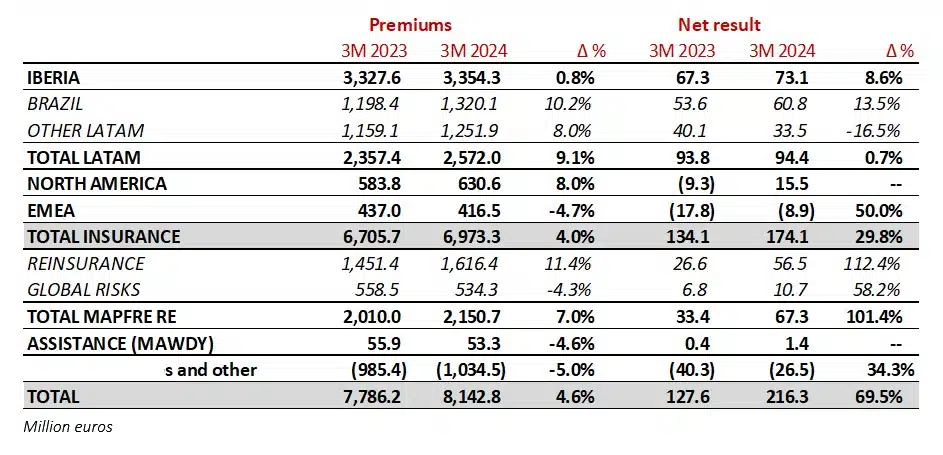 MAPFRE’s net result reaches 216 million euros (+69%) in the first quarter