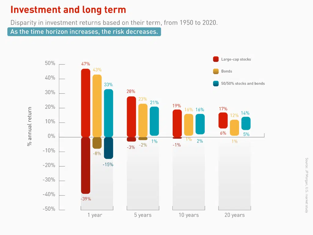 As you can see, risk tolerance is closely linked to term. The longer your time horizon, the better your chances of getting a good return on your savings, and the less risk you will be exposed to. This is fundamental for anyone who wants to learn how to invest: you have to think long term.