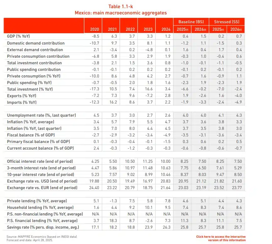 “The latest trade data suggest that tariffs have already begun to impact the economy. In this regard, economic activity is likely to continue deteriorating over the course of the year, as the sectors most exposed to tariff effects undergo adjustments to mitigate the negative impact. However, a recession still seems avoidable, particularly if certain trade issues with the U.S. can be resolved,” says García Castro.