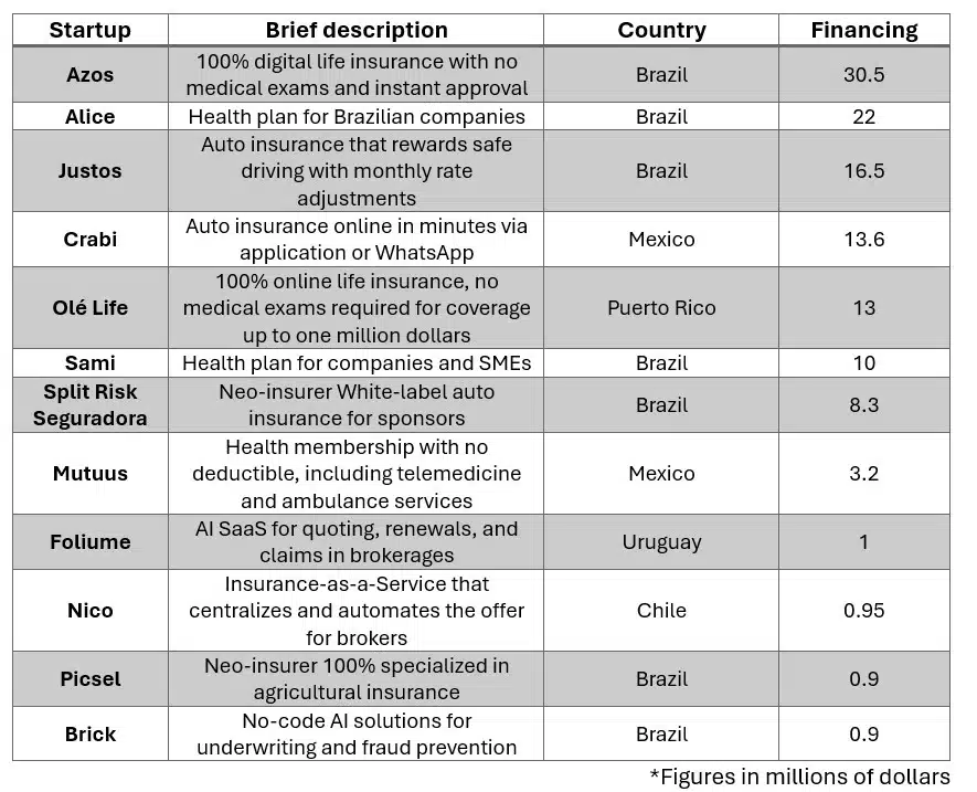 Not all funding rounds are public, but looking at those that are, the largest investments made during the first six months of 2025, as per data from the latest Latam Digital Insurance report, are as follows: