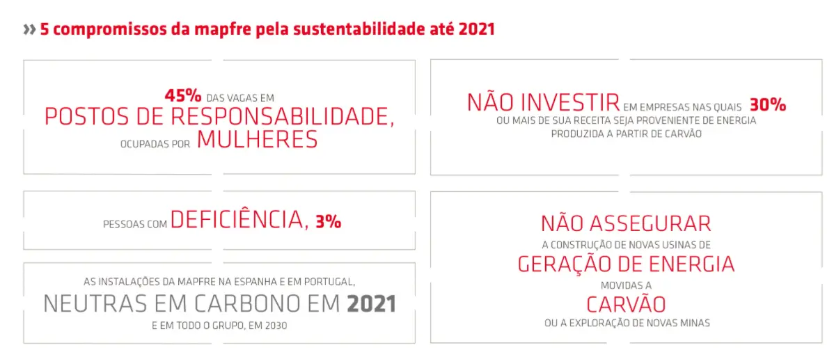 A MAPFRE conta com cinco compromissos para a sustentabilidade até 2021: