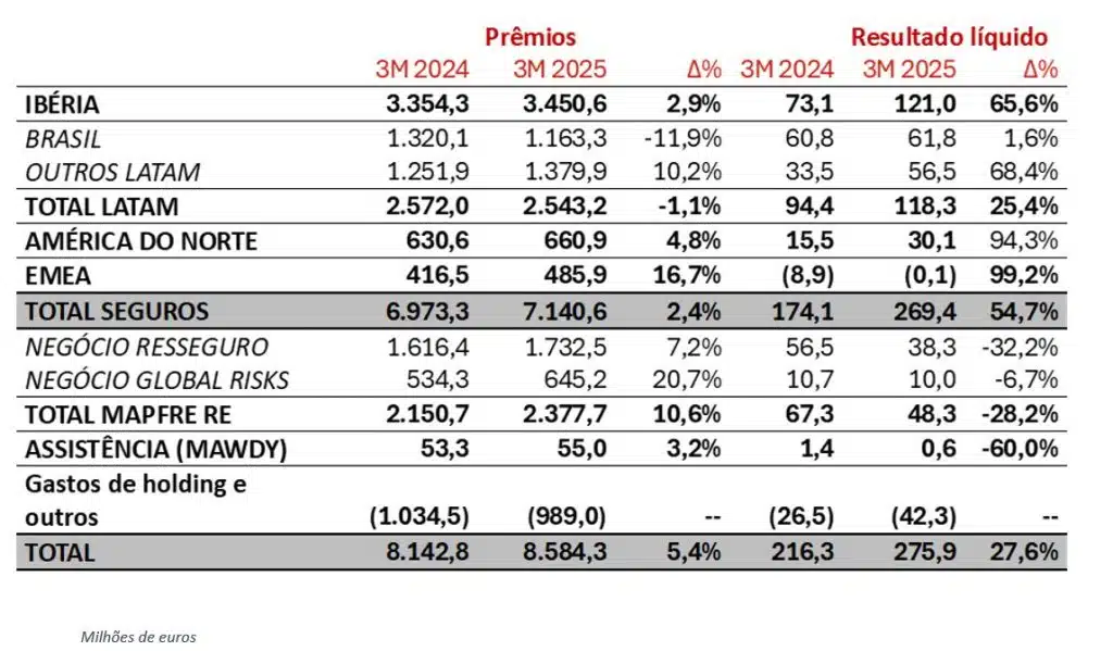 - O negócio de Automóveis registra uma melhoria técnica relevante, contribuindo com 51 milhões para o resultado (+64 milhões em relação ao primeiro trimestre de 2024).
